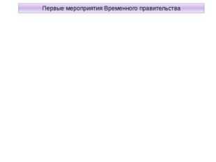 Создание Временного правительства. Из числа представителей Государственной думы было сформировано Временное правительство (кадеты и октябристы) во главе с князем Г.Е. Львовым.