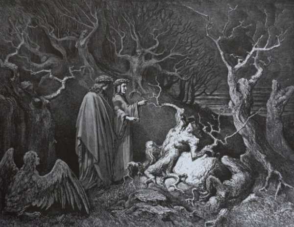 Во втором поясе находятся падшие души, которые при жизни совершили насилие над собой, проще говоря – самоубийцы. Они пребывают в аду в виде деревьев, которые рвут на куски злобные гарпии.