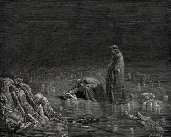 Вот мы приблизились к самому зловещему и таинственному кругу ада – чистилищу. Это место носит множество названий: Предательство, пояс Каина, центр вселенной, ледяное озеро Коцит. Вечность там коротают самые яркие мировые грешники – Иуда Искариот, Брут, Кассий и даже Ленин. Охранниками этой ниши преисподней являются гиганты Эфиальт, Антей, Бриарей.