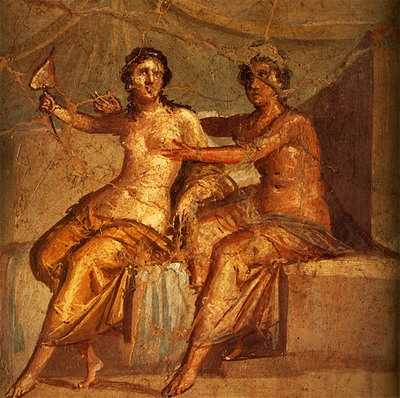На века вошли в историю искусства и римские фрески, многие из которых имеют явно эротический характер, как например это изображение влюбленных.